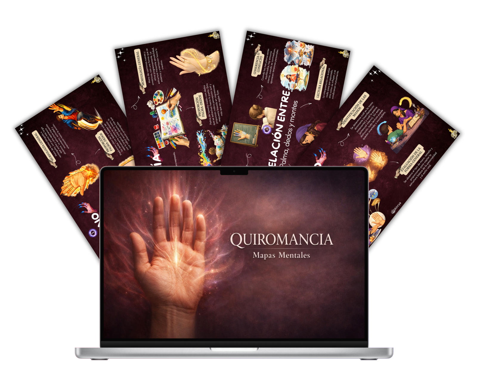 Más de 300 mapas mentales visuales para comprender la quiromancia de forma clara, estructurada y sin memorizar significados sueltos.