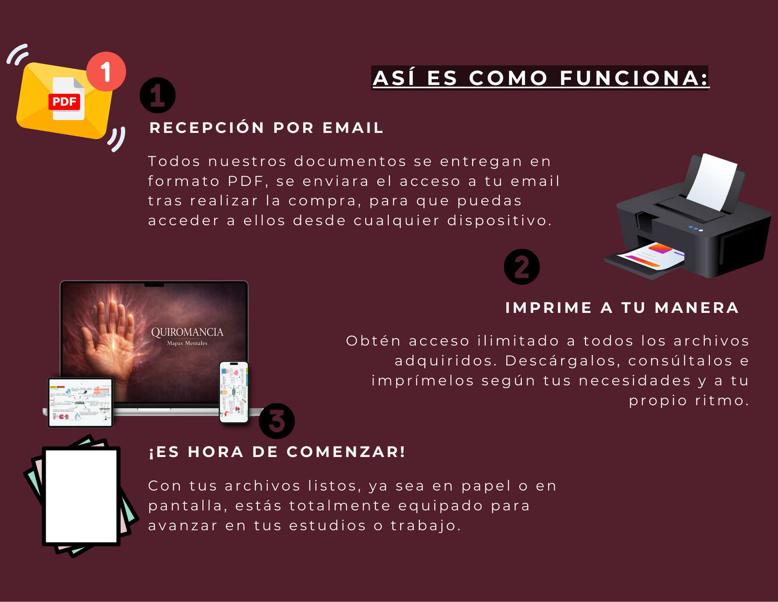 Una vez completada tu compra, recibirás un correo electrónico con un enlace que te enviará al área de miembros ahí podrás descargar el material en formato PDF. Puedes acceder en cualquier momento para descargar o revisar tus documentos.